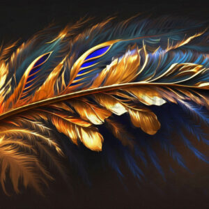 Papier peint plumes dorées fond noir – fresque murale chic et glamour