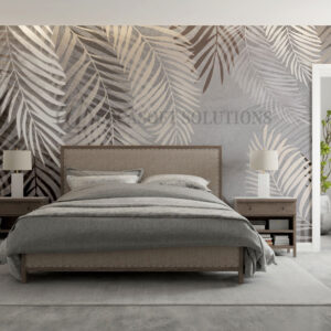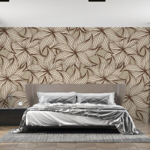 Papier peint panoramique feuillage graphique beige & brun – style contemporain chic