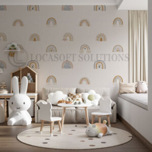 Papier peint enfant motifs arcs-en-ciel – style bohème doux