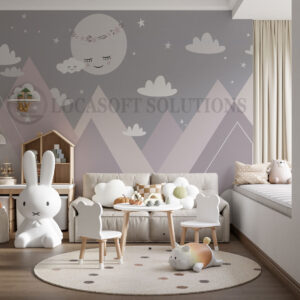Papier peint panoramique chambre enfant – montagnes & lune poétique