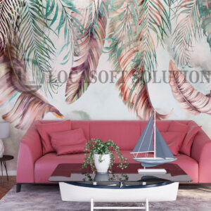 Papier peint feuilles tropicales artistiques – Salon contemporain