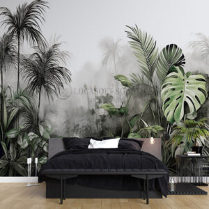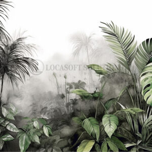 Papier peint panoramique jungle tropicale aquarelle – feuillage exotique brumeux
