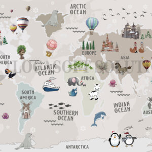 Papier peint carte du monde enfant – animaux & voyage