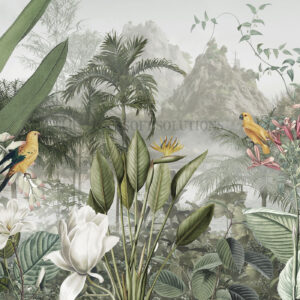 Papier peint panoramique jungle exotique – paysage tropical avec perroquets