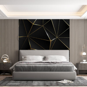 Papier peint panoramique géométrique noir et or – fresque murale design contemporain