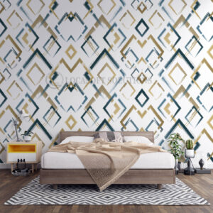 Papier peint géométrique Art Déco – motifs losanges bleu canard et doré