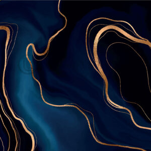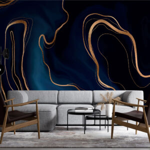 Papier peint panoramique abstrait bleu nuit et lignes dorées – élégance contemporaine