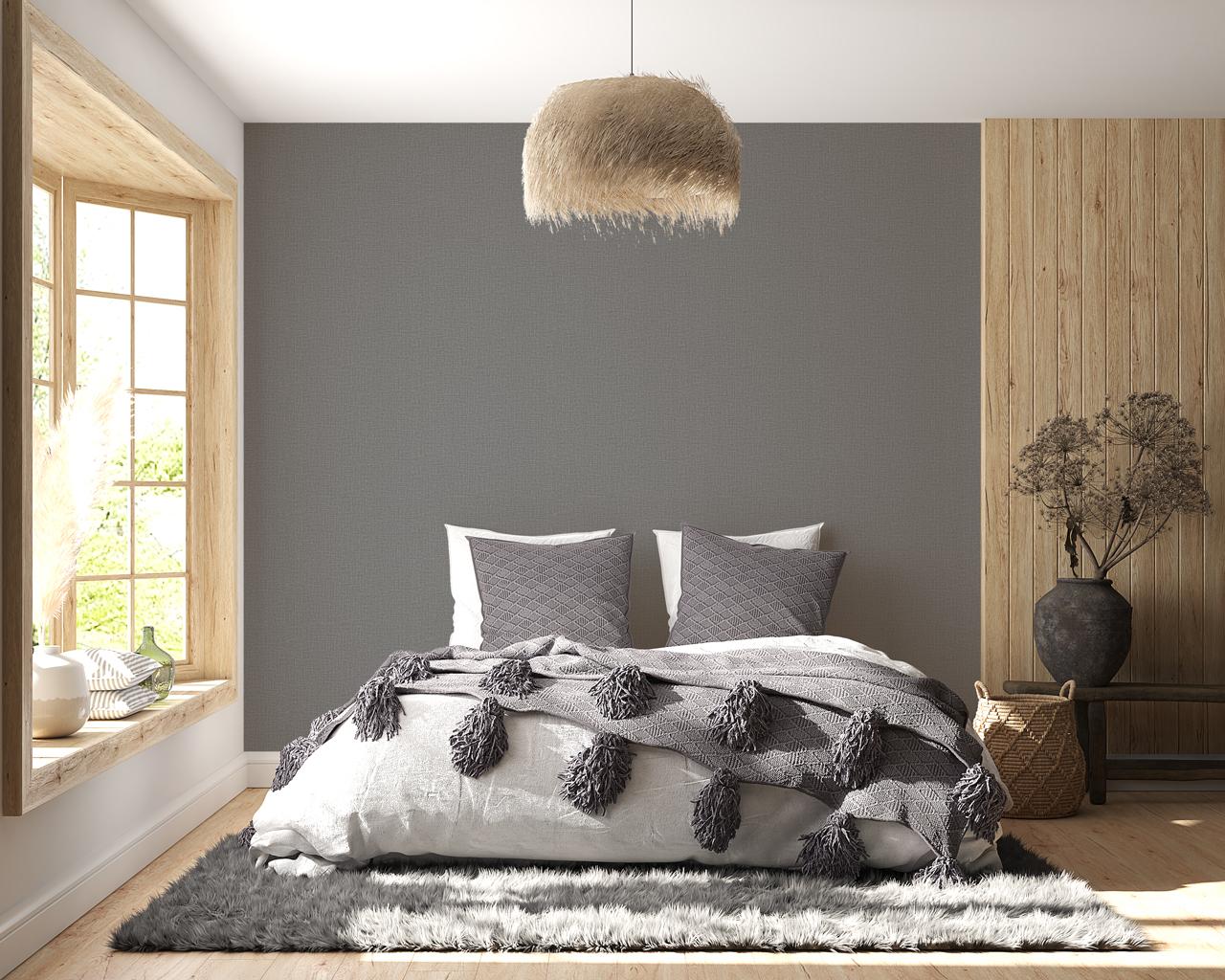 Papier peint gris texturé effet tissu – style bureau contemporain