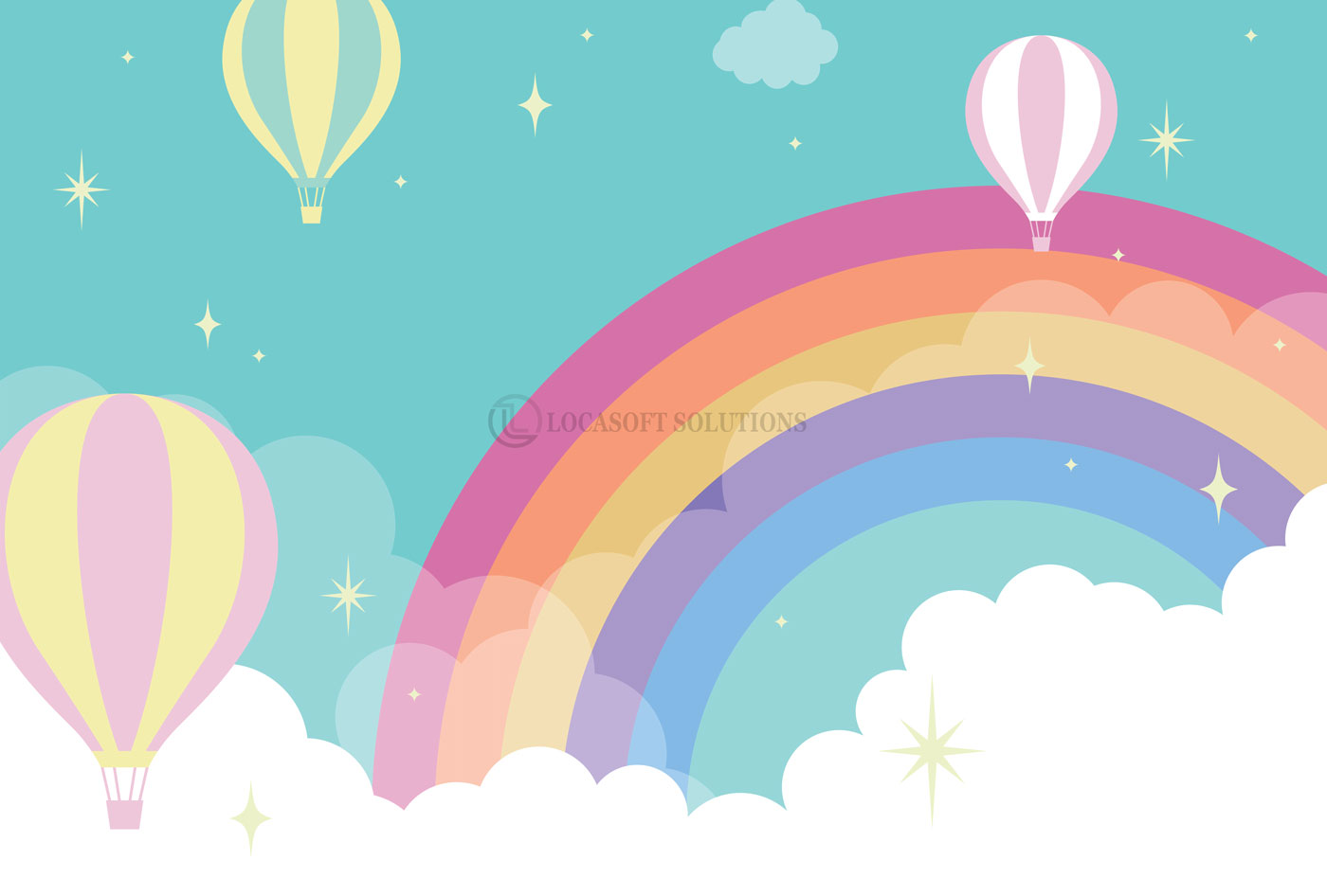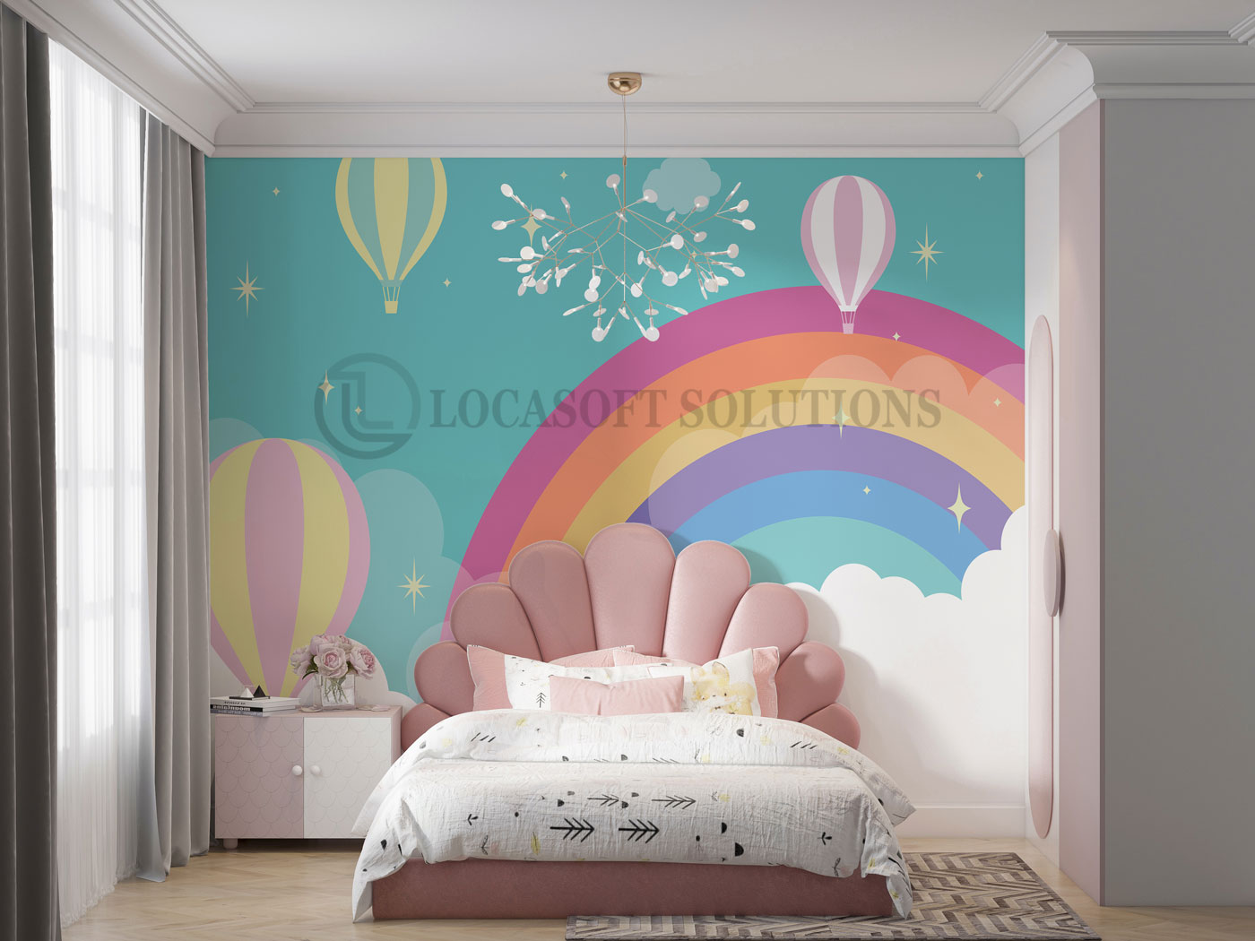 Papier peint arc-en-ciel et montgolfières – ciel enchanté