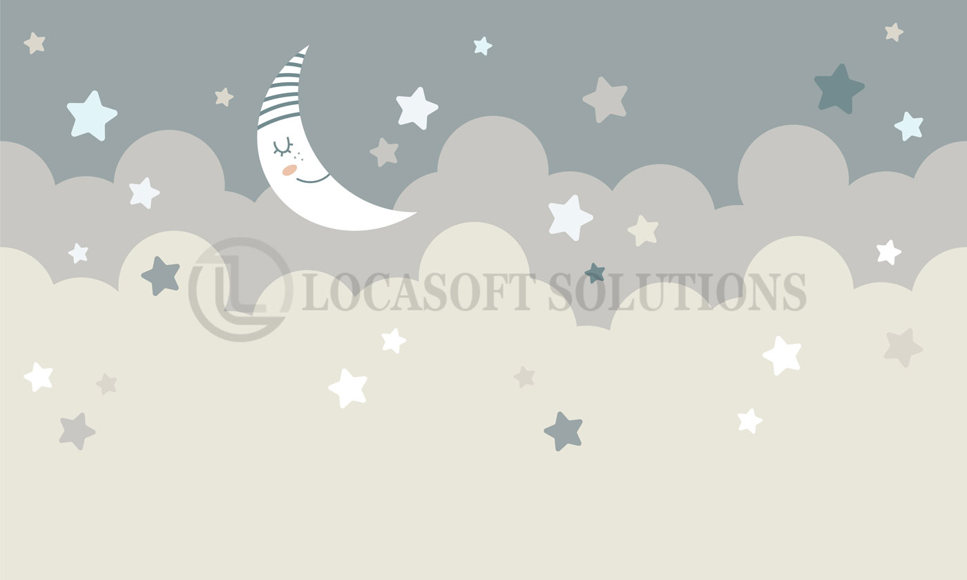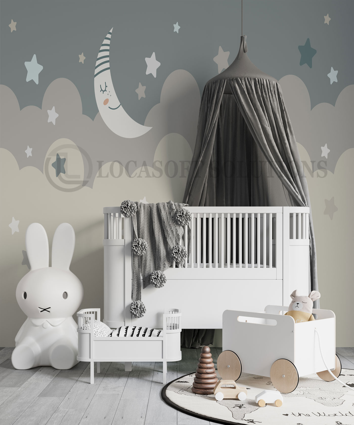 Papier peint bébé lune et étoiles – ciel nocturne doux