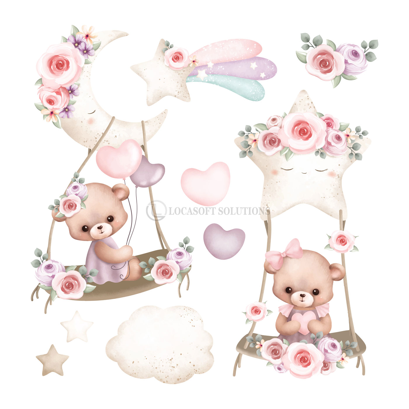 Papier peint bébé oursons lune et étoiles – univers doux et poétique