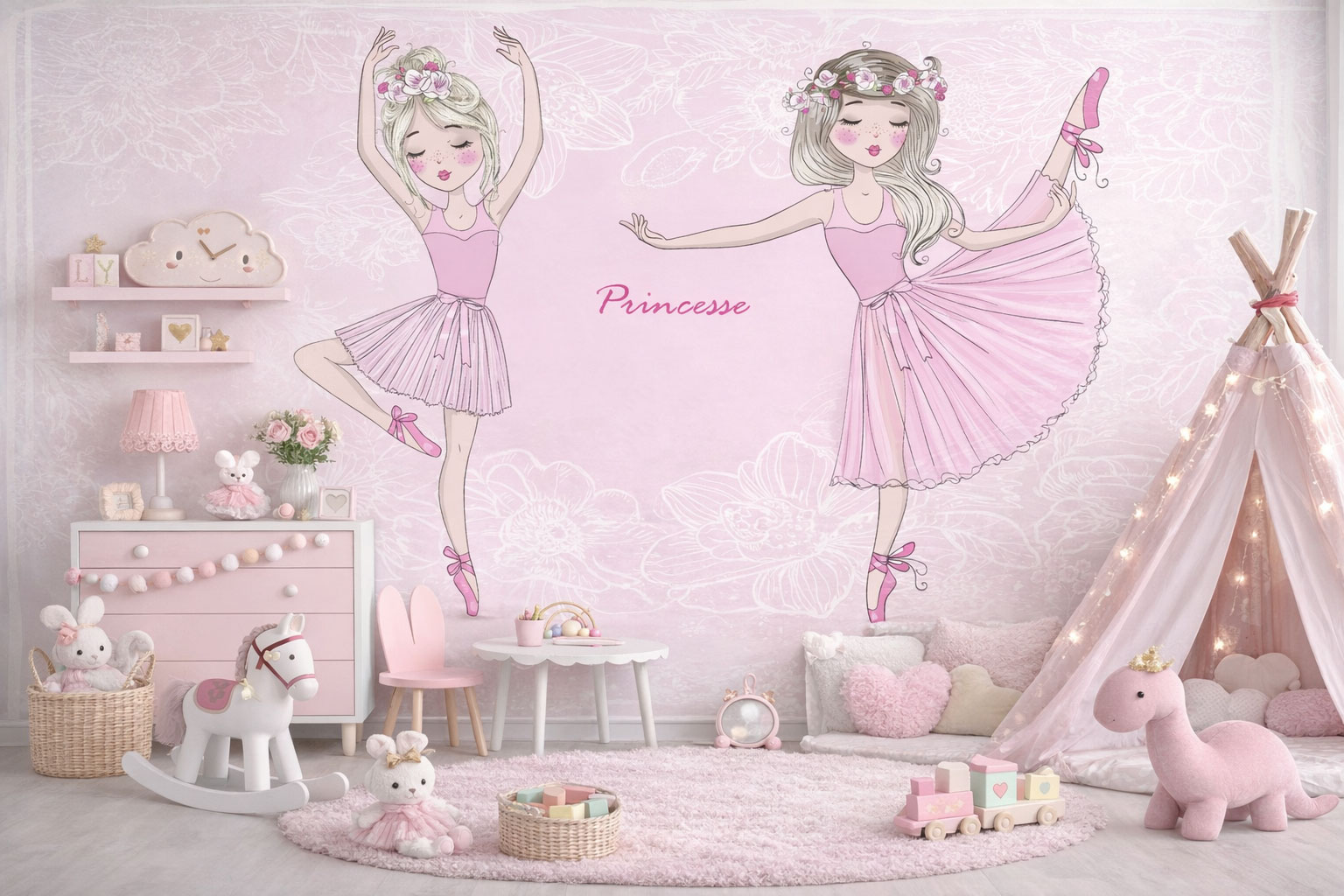 Papier peint enfant ballerines – Princesse rose