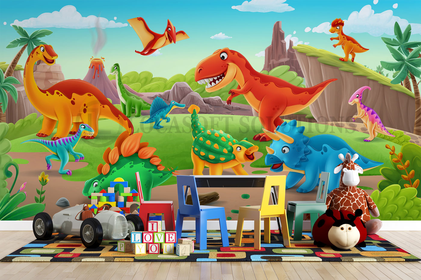 Chaque dinosaure possède une expression attachante et des couleurs vives, parfaites pour stimuler l’imagination et encourager le jeu créatif. Ce décor crée un univers immersif où l’enfant invente des histoires, apprend à reconnaître les formes et développe sa curiosité naturelle pour le monde qui l’entoure.