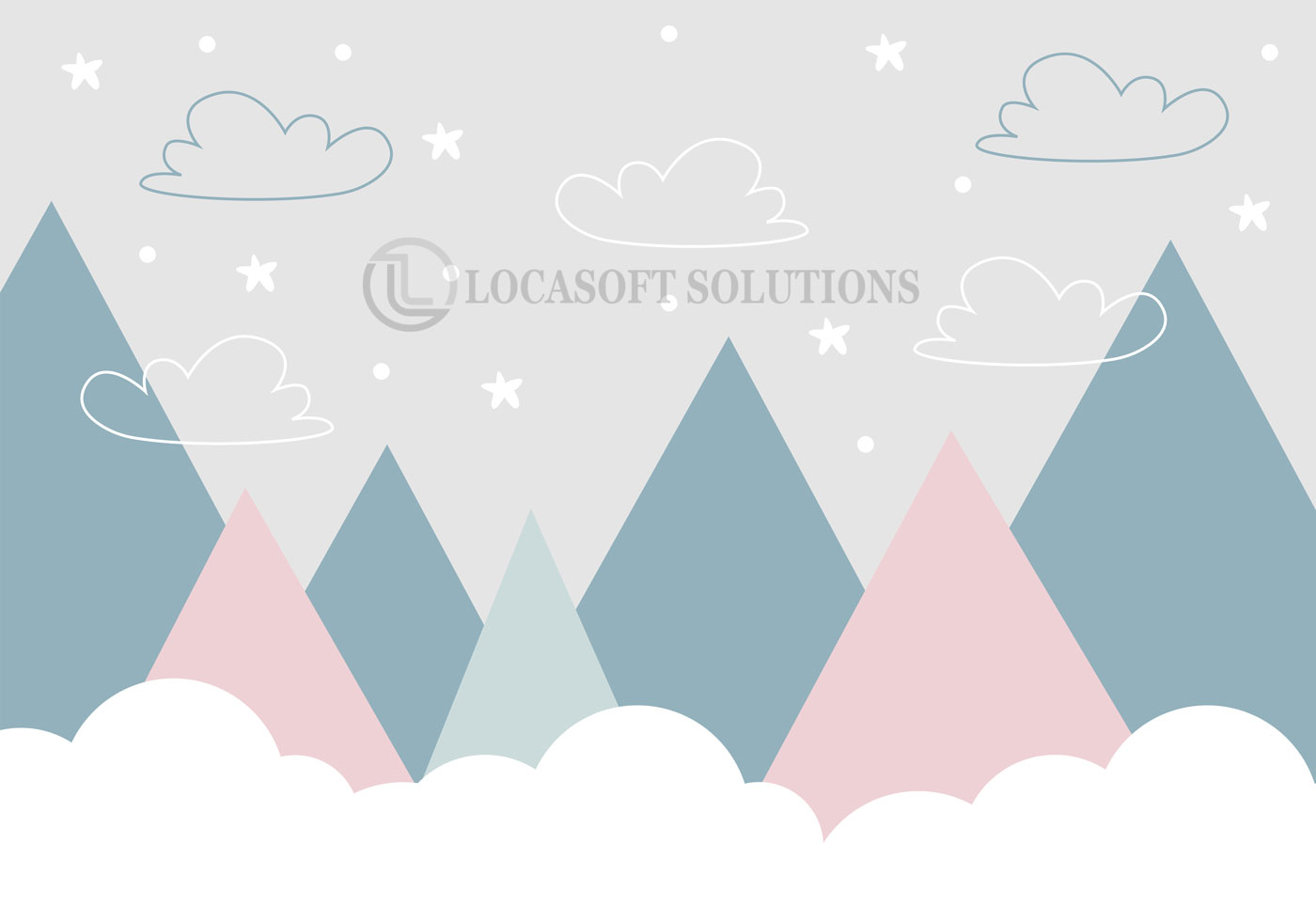 Papier peint enfant montagnes pastel et avion – ciel scandinave