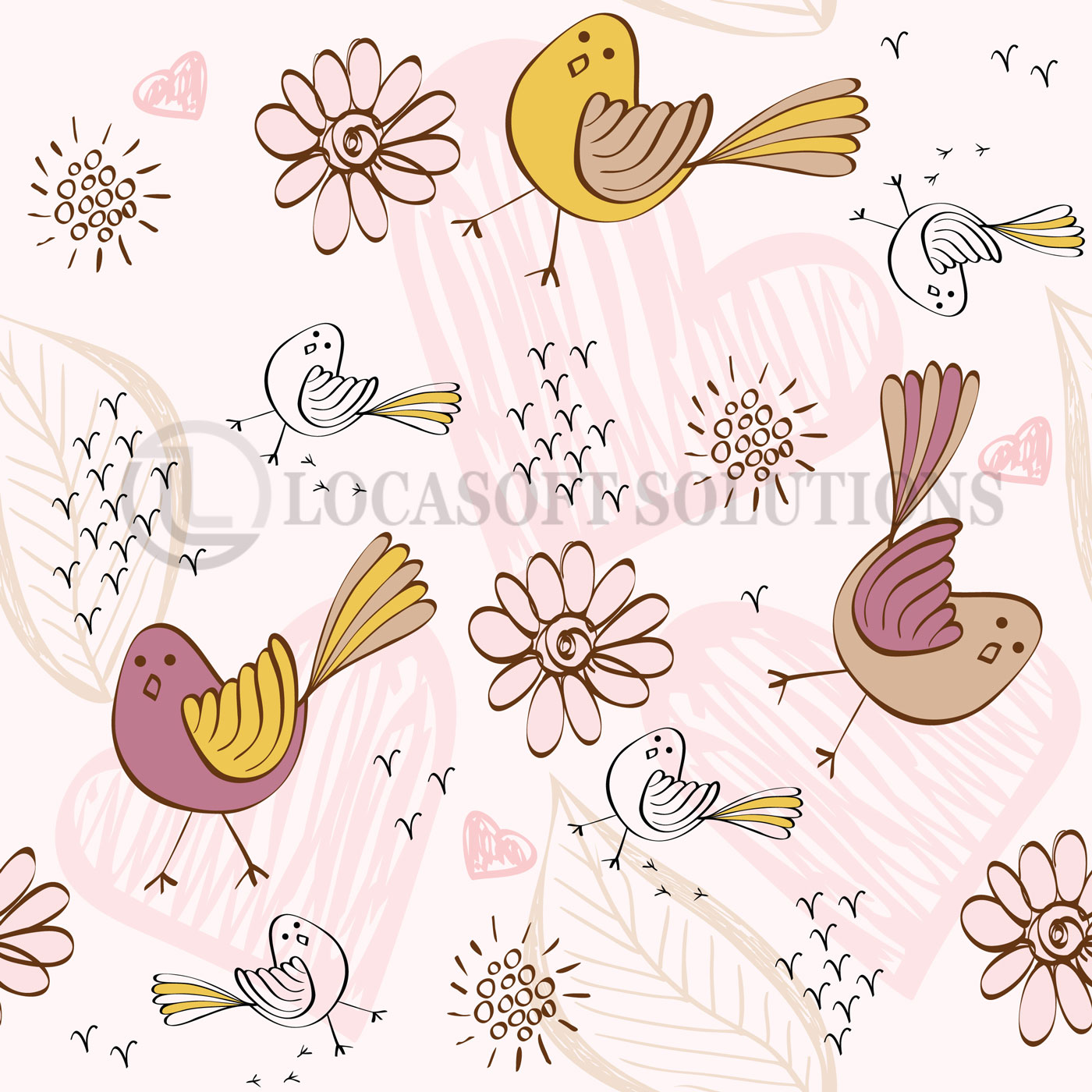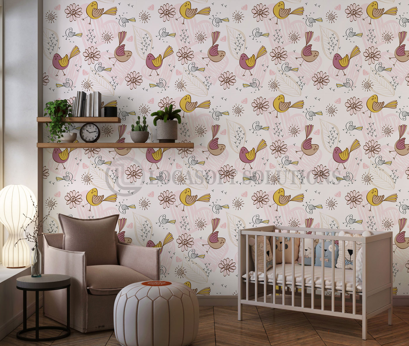 Papier peint enfants oiseaux et fleurs – motif doux pastel
