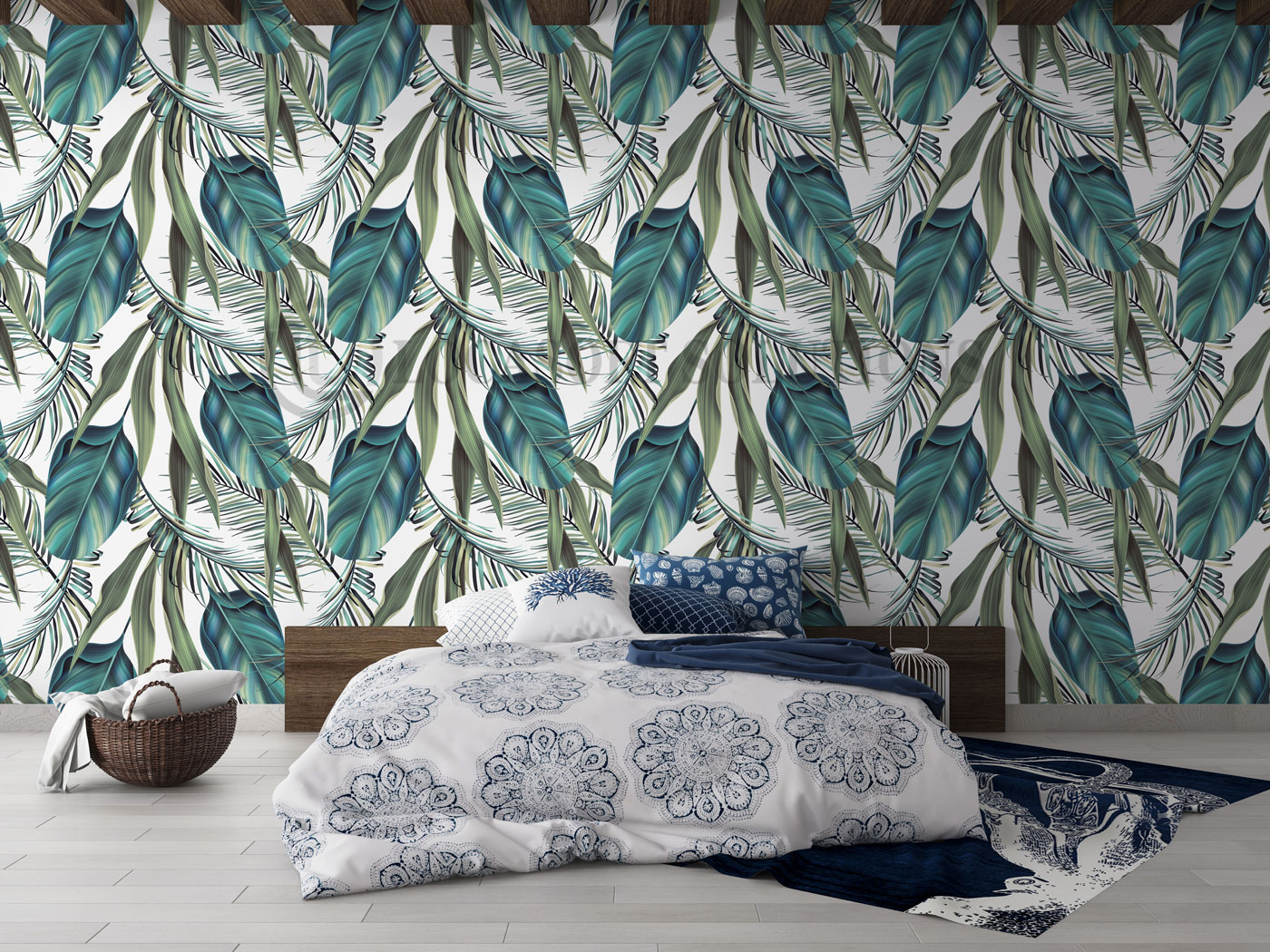 Un motif tropical moderne pour une chambre élégante et rafraîchissante.
