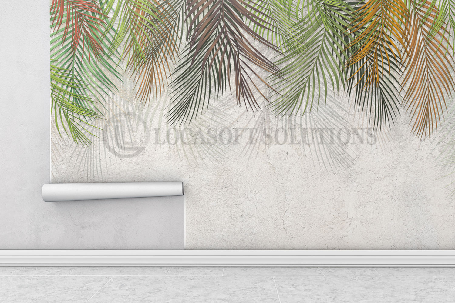 Le motif végétal habille le mur avec finesse et apporte profondeur et caractère à l’espace.