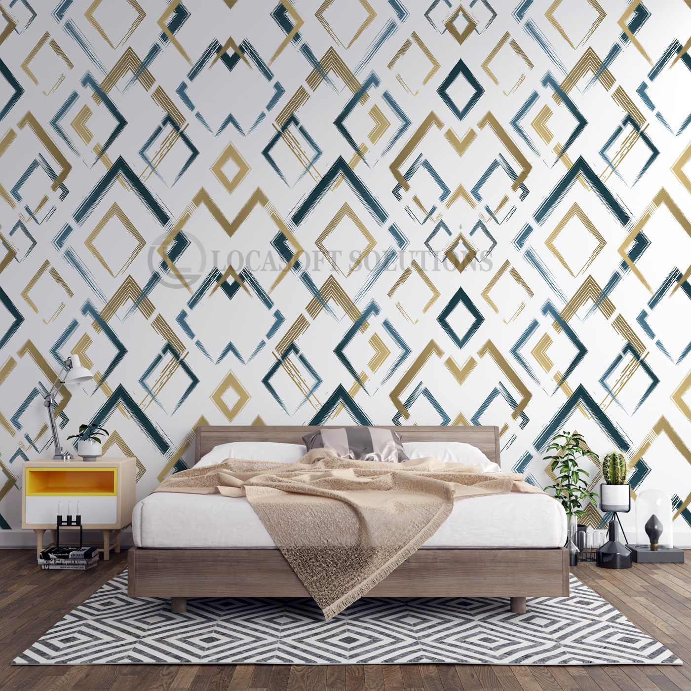 Un motif graphique chic inspiré de l’Art Déco pour un intérieur moderne et élégant.