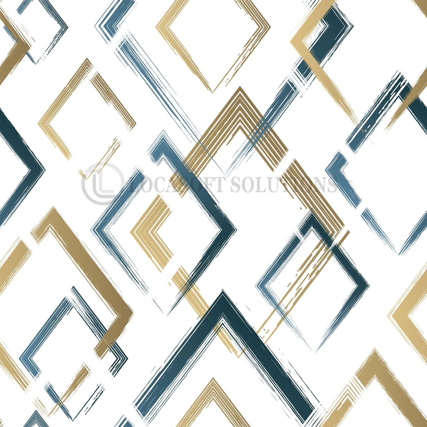 Papier peint géométrique Art Déco – motifs losanges bleu canard et doré