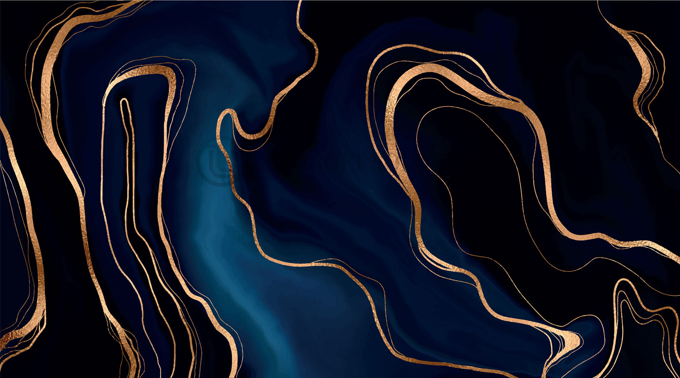 Papier peint panoramique abstrait bleu nuit et lignes dorées – élégance contemporaine