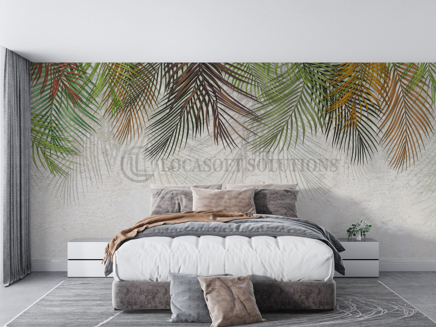 Une cascade de feuilles exotiques pour une chambre naturelle et élégante.