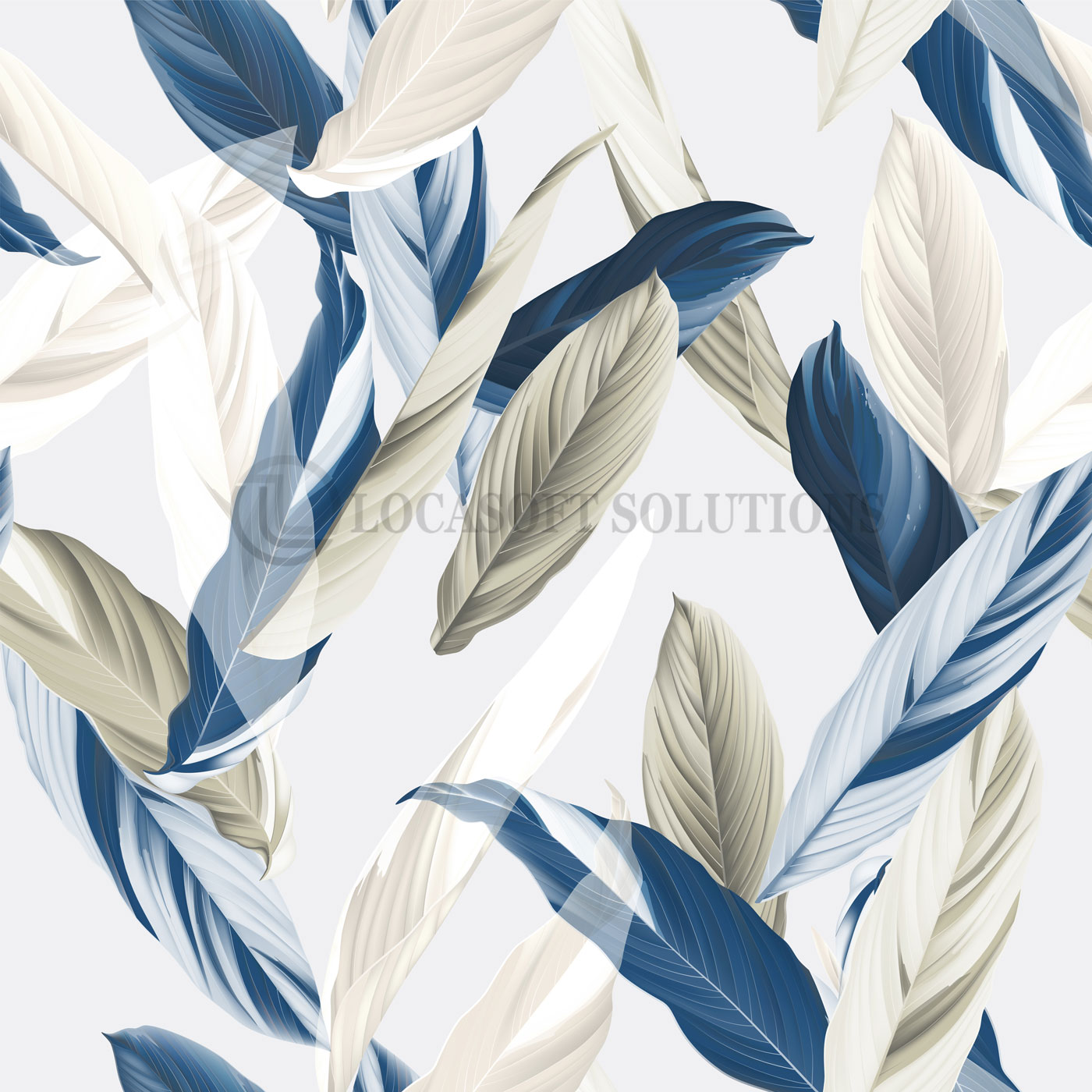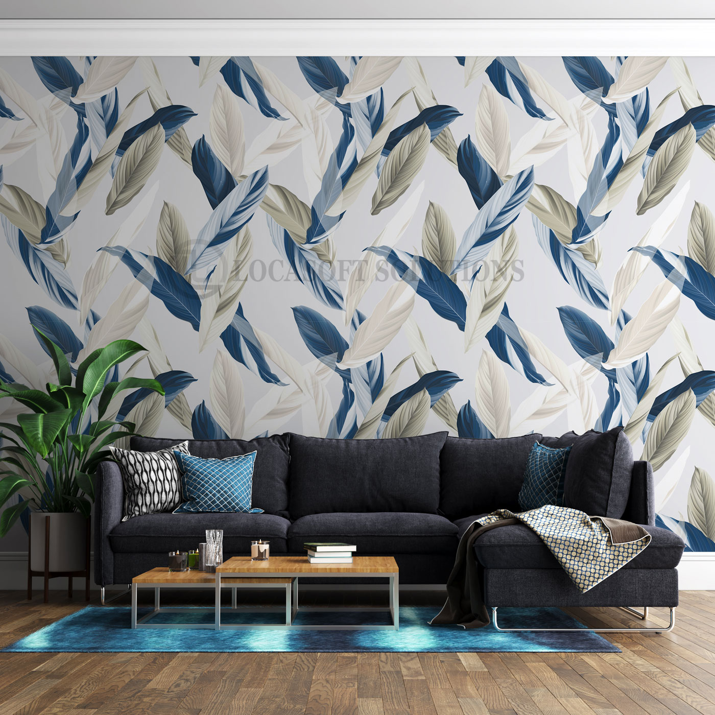 Papier peint panoramique feuilles bleues – motif végétal moderne