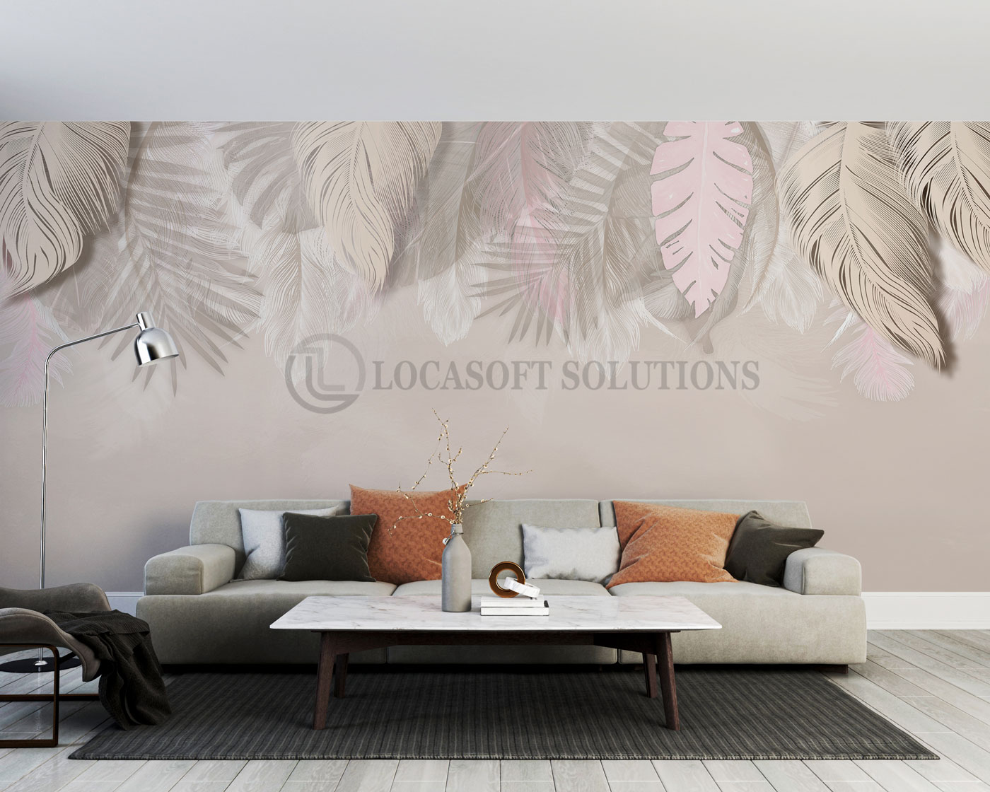 Papier peint panoramique feuilles pastel – ambiance douce et élégante