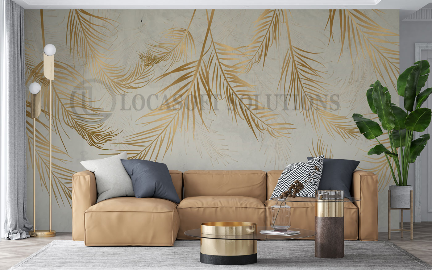 Un décor mural végétal aux lignes dorées pour sublimer votre intérieur avec douceur et raffinement.