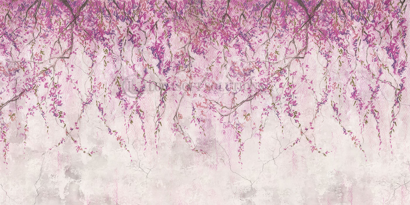 Papier peint panoramique fleurs retombantes rose – décor mural romantique et poétique