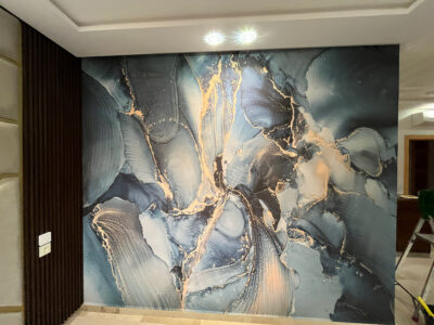 Retenez la plus grande largeur et hauteur de votre mur sans prendre en compte les portes et fenêtres. Vous pourrez découper les pourtours au cutter.