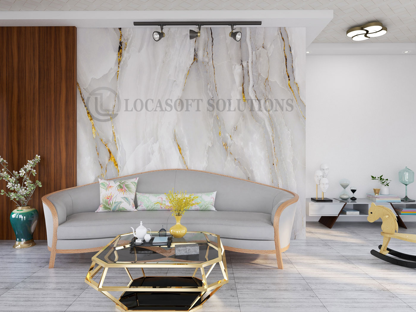 Mur décoratif effet marbre blanc veiné or pour une ambiance moderne et haut de gamme.