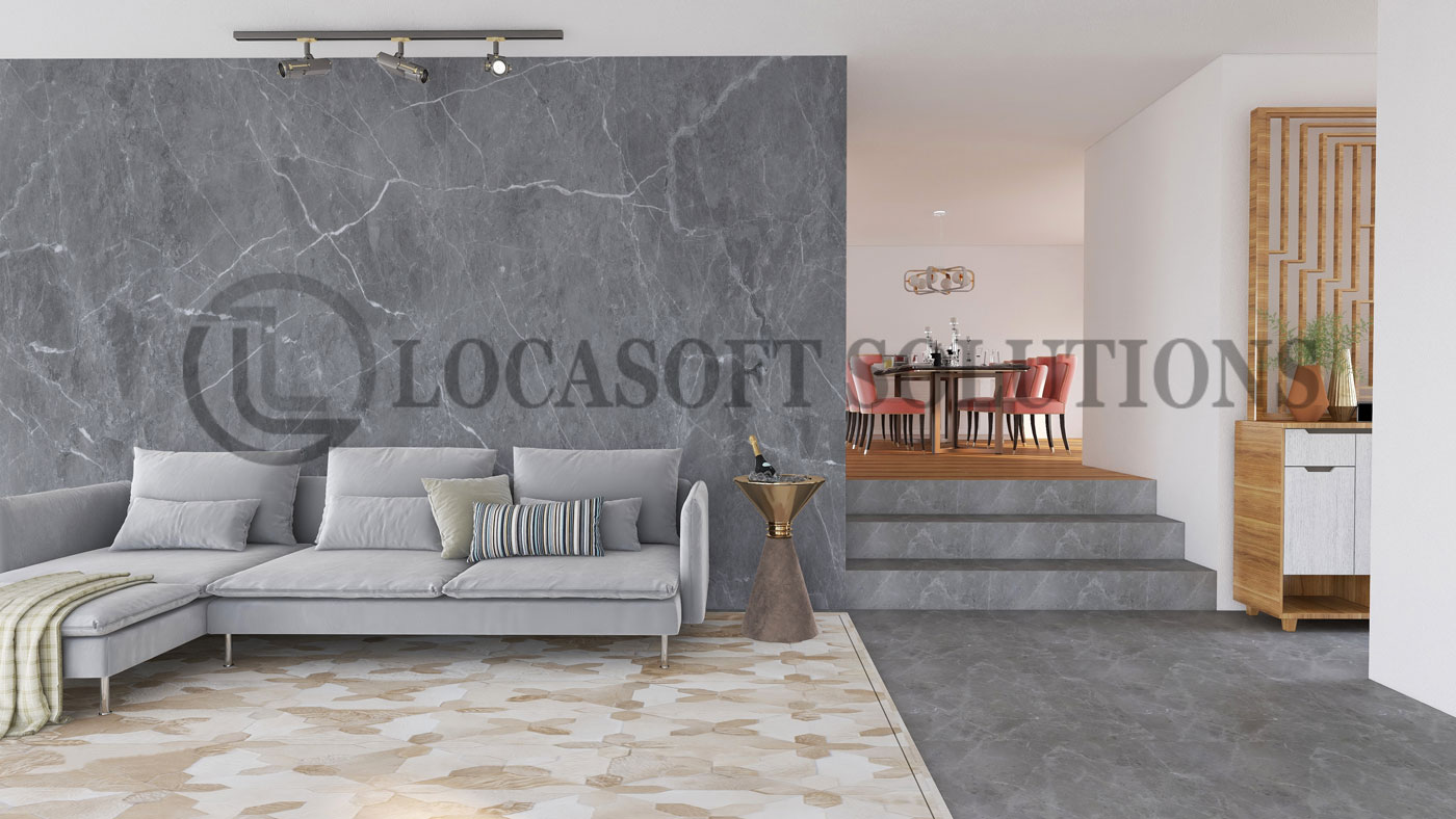 Décor mural imitation marbre gris pour un intérieur moderne et élégant.