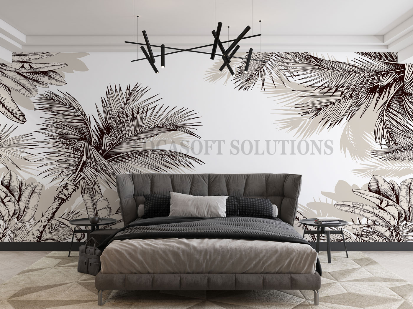 Un décor mural végétal chic et contemporain pour une chambre design.