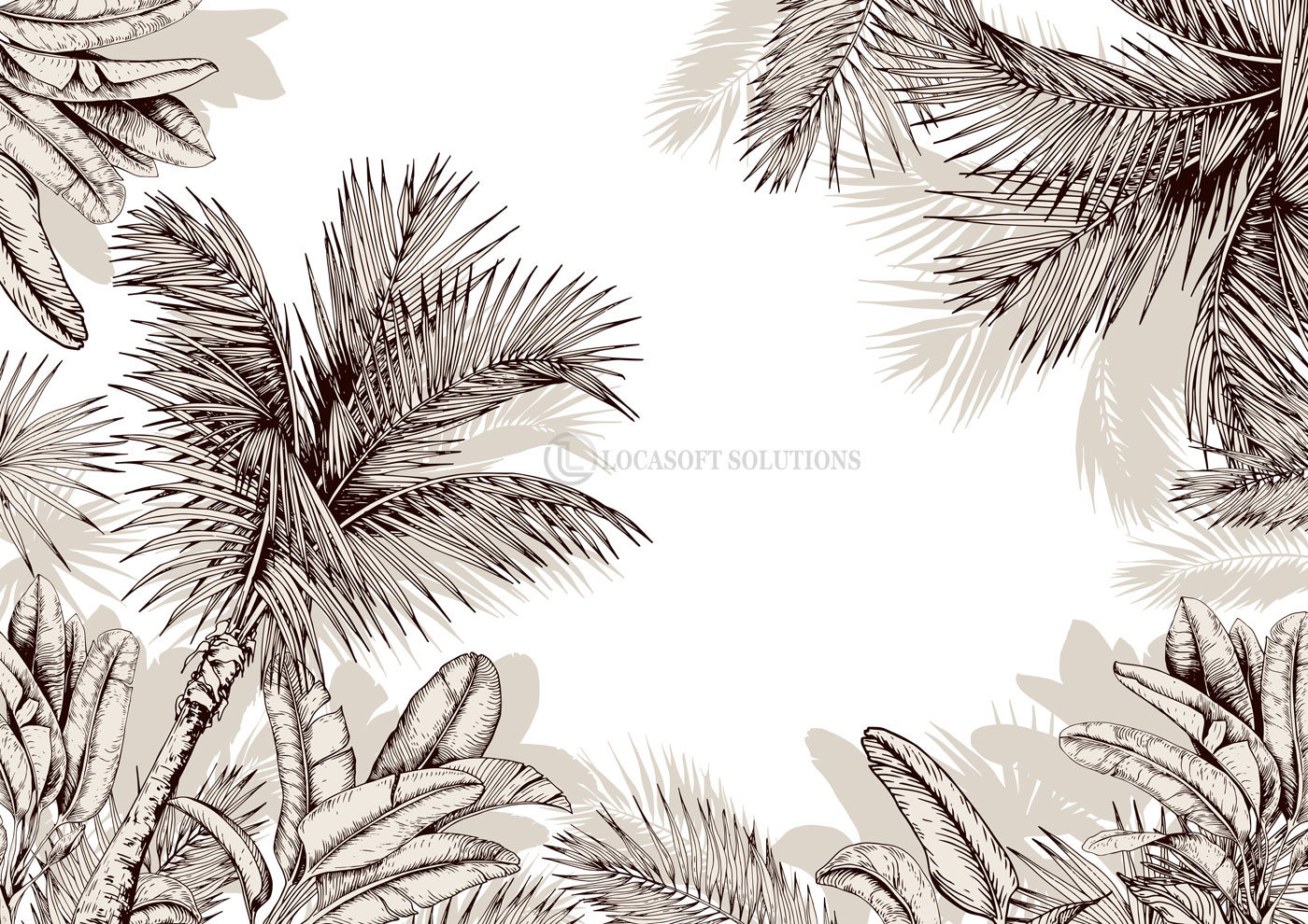 Papier peint panoramique palmiers graphiques – fresque tropicale moderne noir et beige