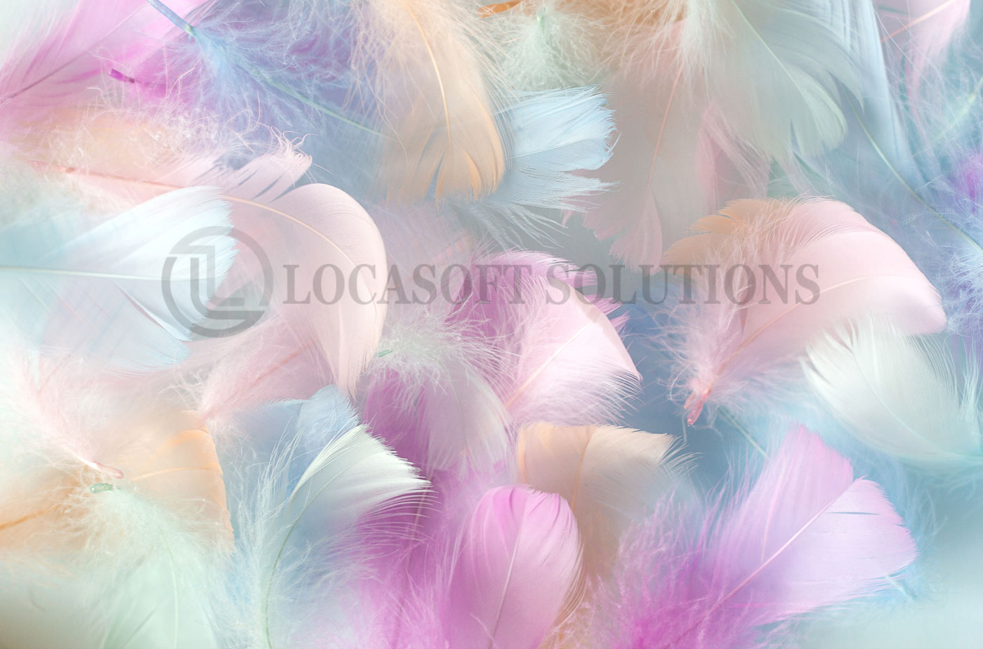 Un mur tout en légèreté avec des plumes multicolores aux nuances poudrées et relaxantes.