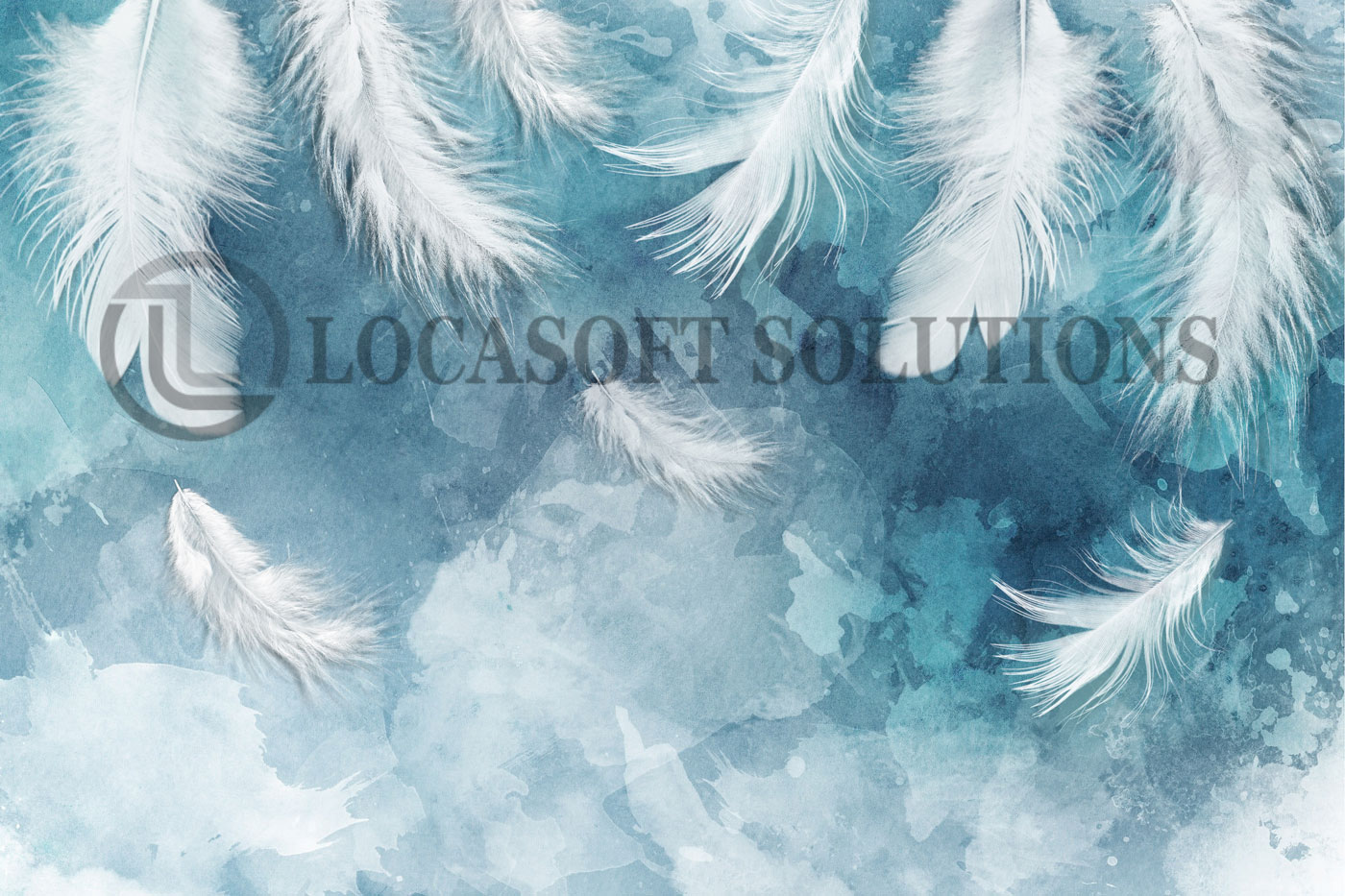 Papier peint plumes blanches sur fond bleu – Élégance aérienne